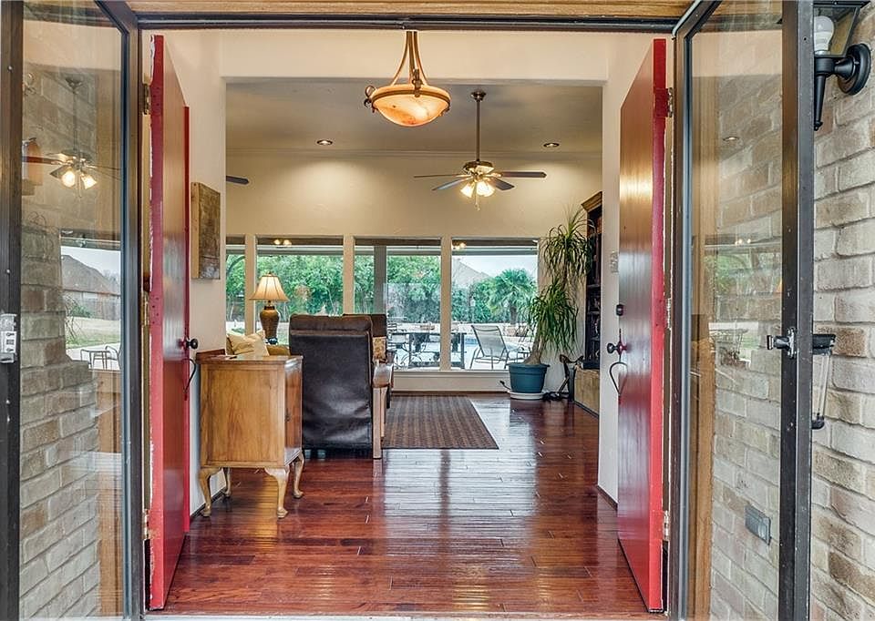 AMAZING NEW PRICE! Fresh, new paint throughout the house! One of a kind custom ranch style home on just over 1 acre in Rowlett. Easy access to Bush Turnpike, I30 and the Lake! Kitchen features granite counters, double ovens, and tons of cabinet space! Off the kitchen is your dining room with builtin buffet overlooking the open floor plan living room with 12ft ceilings and gorgeous wood burning stone fireplace. The Master Bedroom with en suite bathroom boasts separate his and her vanities and closets and offers access to the oversized backyard oasis with 40ft diving pool, long covered patio; and still plenty of yard and grass space to spare! LIFETIME TRANSFERRABLE WARRANTY on Foundation!
