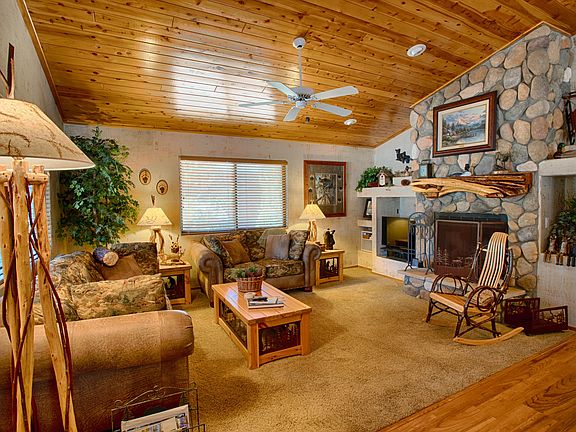 Located in the beautiful subdivision of Bison Ridge. This cozy cabin offers 2 bed/2 bath, river rock fireplace, T&G ceiling, an open floor plan with 2 porches. This home has been well maintained by the original owners. It backs the national forest and is tucked away from busy roads and in the gated area of Bison Ridge. Furniture may be available