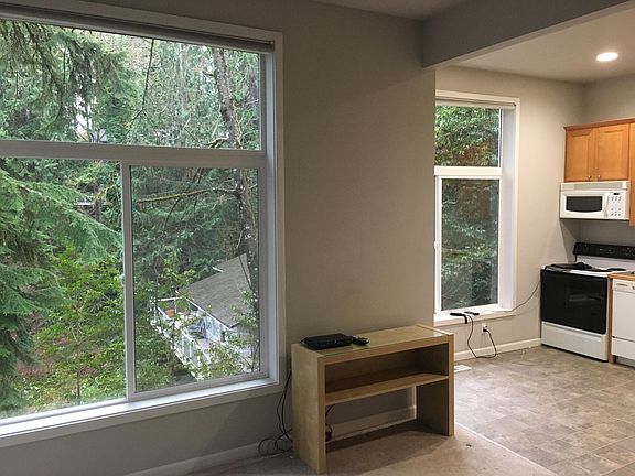 Single bedroom two-story apartment available in a forested setting on Mercer Island. The apartment abuts a single-family residence, originally designed as a mother-in-law unit. The apartment is located halfway down the east side of Mercer Island, just off East Mercer Way. Lessors are looking for a six-month lease. At approximately 1,180 square feet in size, the apartment's top level has a large living area with southern-facing picture windows and a full kitchen with a dishwasher, microwave, electric oven, stovetop range, and full refrigerator. The apartment has a bedroom, bathroom with a full bath/shower, and a built-in washer/dryer below the first level. Both levels have large picture windows facing south to southeast, overlooking a beautiful, forested setting. Separate uncovered parking is available. No pets, please. Security deposit $1,100 ($750 refundable), First/Last due at signing. Water, natural gas, electricity, internet service included.