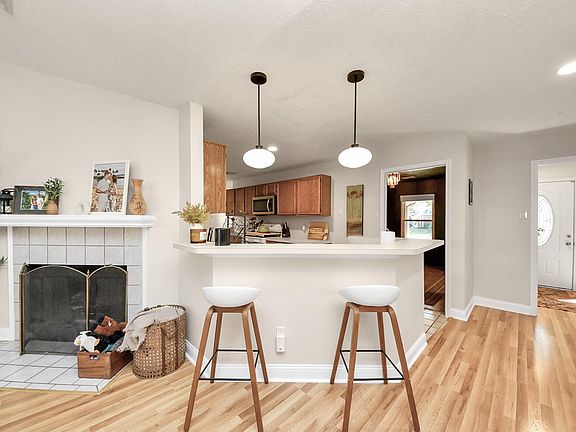 Gas fireplaceModern neutral tonesUpdated sidingHigh ceilingsNew microwaveUpdated appliancesNew wood-look floors