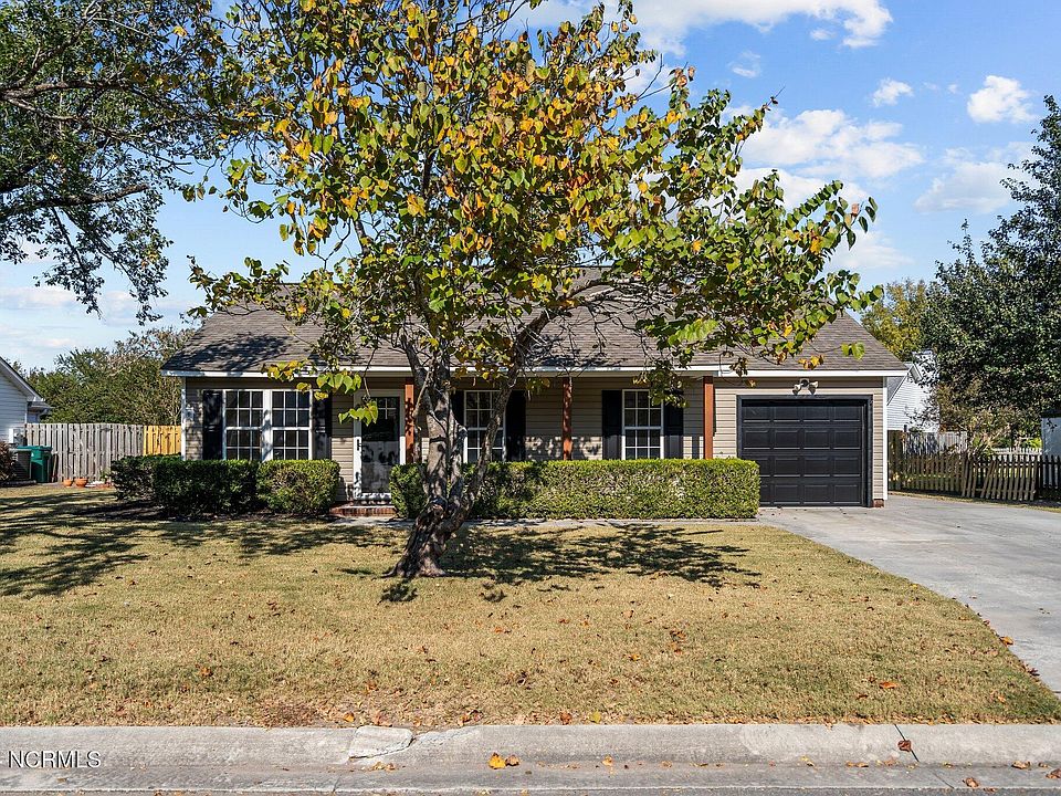 Newly renovated 3 bedroom, 2 bath + an additional conditioned 480 sqft workshop/studio /2 car garage. This home has brand new appliances, backsplash, quartzite countertops, new kitchen cabinets, LVP flooring, updated bathrooms, carpet, light fixtures and so much more! Enjoy the covered breezeway and fenced in backyard with double gate for easy access to the workshop or studio out back. Plus a brand new garage door out front and a generous extended driveway, parking is never a concern. Community amenities include a pool, clubhouse, tennis courts, playground, and boat storage. 15 minutes from Carolina Beach and downtown Wilmington, local shops and restaurants! Schedule a showing today!