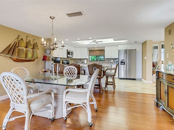 This top floor and second floor walk up condo offer vaulted ceiling, updated kitchen and floors and unparalleled views of the 15,16th fairways and lakes. Large carport with extra storage a plus and the split layout is ideal for the those friends and guest that show up on your doorstep for a visit. Great sunsets from kitchen window and and sunrises from enormous screened balcony. This gated country club community is off the Mcgregor corridor and tucked away and back on the Caloosahatchee River. Get all the wonderful amenities that come with this bundled development, unlimited golf, tennis, pickle ball, fitness center, bocce, and 192 slip marina, walking and biking trails all await your arrival