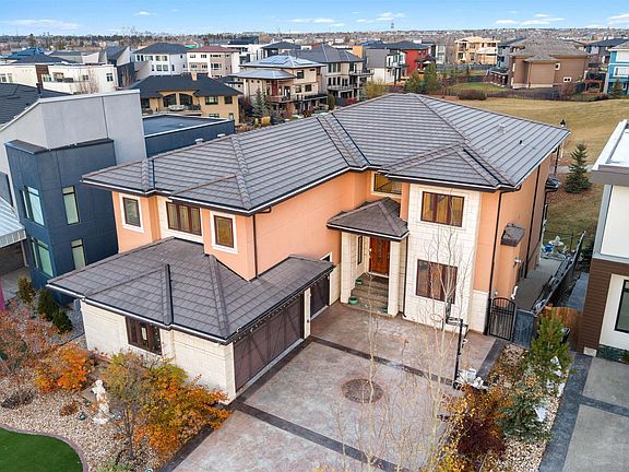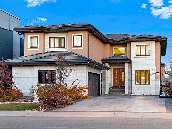 Exquisite WALKOUT ESTATE in prestigious Westpointe of Windermere, offering 6,152 sq.ft. of living space and BACKING ONTO SERENE GREEN SPACE. This thoughtfully designed custom home features: spacious 6 bedrooms, 6 baths (including 4 en-suites), a HEATED TRIPLE GARAGE, central A/C, high-end appliances, spice kitchen, elegant feature walls, open-to-above living area, formal dining & living rooms, BALCONY, HEATED BASEMENT FLOOR, plus a main-floor bedroom with full bath. The upper level includes: a bonus room overlooking the park and a luxurious primary suite with spa-style ensuite, jacuzzi, fireplace, and steam shower. The walkout lower level is designed for entertainment with a large recreation room, gym, bedroom, full bath, and access to a covered patio. Fully landscaped with statues and a fountain, this exceptional home combines elegance, comfort, and craftsmanship.