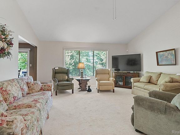 Welcome to this brick ranch condo in Cotton Creek, single level living at its finest! Nestled against a private treed backdrop, this two bedroom, two bath home offers 1,360 sq ft of move in ready comfort and accessibility. The generous great room with vaulted ceilings flows seamlessly into the dining area and kitchen, it's light, open, and perfect for both cozy evenings and entertaining. The primary suite features an oversized layout, a huge closet, and its own private full bath which includes grab bars to enhance safety, and an aluminum ramp in the attached 2 car garage ensures ease of access. The ready to be finished basement offers endless possibilities for extra living space. Outside, the back patio is the perfect spot to unwind with peaceful wooded views. In a prime location just minutes from I-94, local restaurants, and access to Lake St. Clair, this property blends convenience with tranquility. All appliances stay.