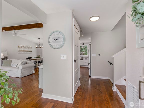 Lovingly updated & gorgeous, this tri-level home is bright & welcoming. Large windows & vaulted ceiling fill the open main floor w/sunlight, while hardwood floors w/cozy fireplace make you feel at home. You will love this kitchen w/quartz counters, SS appliances & huge island w/eating space. Upstairs the primary has its own luxury ensuite bath, while 2 bedrms share a newly remodeled guest bath. The basement is the perfect place to have a movie rm, playrm or office. New carpets & paint! Amazing huge private backyard, complete w/newer deck, hot tub, gardens & fruit trees. Even backs to greenbelt. Neighborhood is wonderful w/ walking loops & quiet streets but so close to shopping centers & transportation. Excellent Mukilteo schools!!