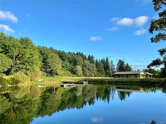4 separate tax parcels combine into one large magnificent property with grand views to the east and south, several ponds, large barn that could accommodate horses Property includes multiple buildings that once comprised a day camp, ropes course and many hiking trails. Borders feeder stream to onondaga Creek at southern border, including several waterfalls. Much potential, much beauty. Two large buildings, 1 suitable for single family home. A 2-unit cabin and other smaller buildings