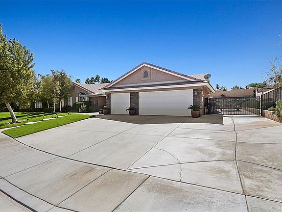 Back on Market after buyers failed to perform. No fault to sellers. Buyers loss is your gain. Stunning newer single story property located in one of the finest neighborhoods in West Palmdale. This lovely home features 4 oversized bedrooms, 3 bathrooms, gated RV access., formal dining room, and formal living room. Family room, breakfast bar, and in kitchen dining. Large master suite with master bath with separate shower & soaking tub. Attached 3 car garage, Indoor Laundry, block walls, designer landscape front and rear. Entertainers backyard with Island bbq and covered patios. Storage shed too. Centrally located and commuter friendly. No Hoa or Mello roos. Come for a visit. Stay for a lifetime. Welcome Home!