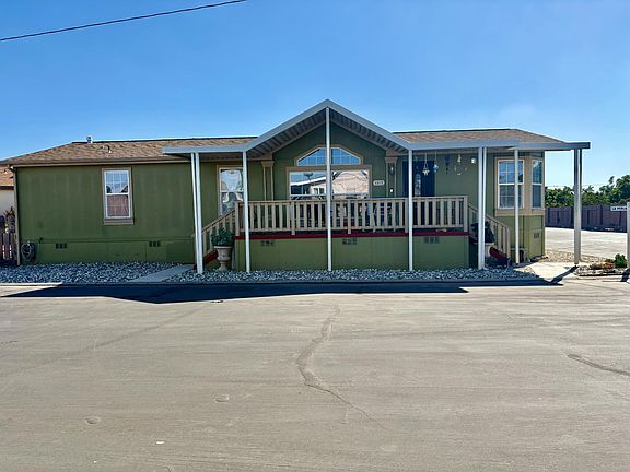 This well-maintained double wide mobile home boasts two bedrooms and two bathrooms, plus a flexible study or craft room that can easily serve as a third bedroom. Spanning 1,358 square feet, the interior is bright and welcoming, with abundant natural light streaming into the living spaces. The kitchen is generously sized and features ample cabinetry for storage, while the convenience of an inside laundry room adds to the home's functionality. The master bath stands out with double sinks, a shower stall, and an oversized oval tub, offering a private retreat. Located in Morningside Mobile Home Park, a 55+ senior living community, the home offers a rural setting with a charming country ambiance. Drought-tolerant landscaping in both the front and back yards ensures easy maintenance and eco-friendliness. Perfectly positioned just across from the new Costco, TJ Maxx, and HomeGoods stores and only minutes from Riverbank Crossroads Shopping Center, this home provides the ideal blend of tranquility and convenience.