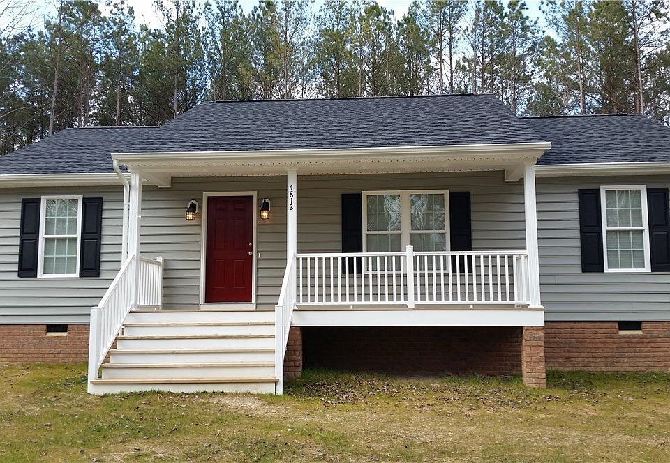 This home is ABSOLUTELY Beautiful. Totally maintenance free exterior with gutters and vinyl porch railings. It looks like you are coming into a perfect model home! Located in the center of a level and private lot with full country front porch that is just perfect for your porch swing! Loaded with closet space galore! A big coat closet when you walk in the door, linen closet for hall bathroom, huge closets in the bedrooms, walk in closet in the Master. Fabulous utility room as soon as you walk in the back door with washer and dryer that conveys with the property. Amazing GRANITE countertops, stainless appliances and eat in kitchen that flows in to the huge great room. Kitchen cabinets are custom and hand made. New blinds through out the entire home convey with the property. The cathedral ceiling and bright layout makes the great room look huge. You will love the water from the deep well. Located less than 5 miles from interstate and approximately 25 minutes to downtown Richmond. All this with $0 down financing through USDA and a price under $200,000.