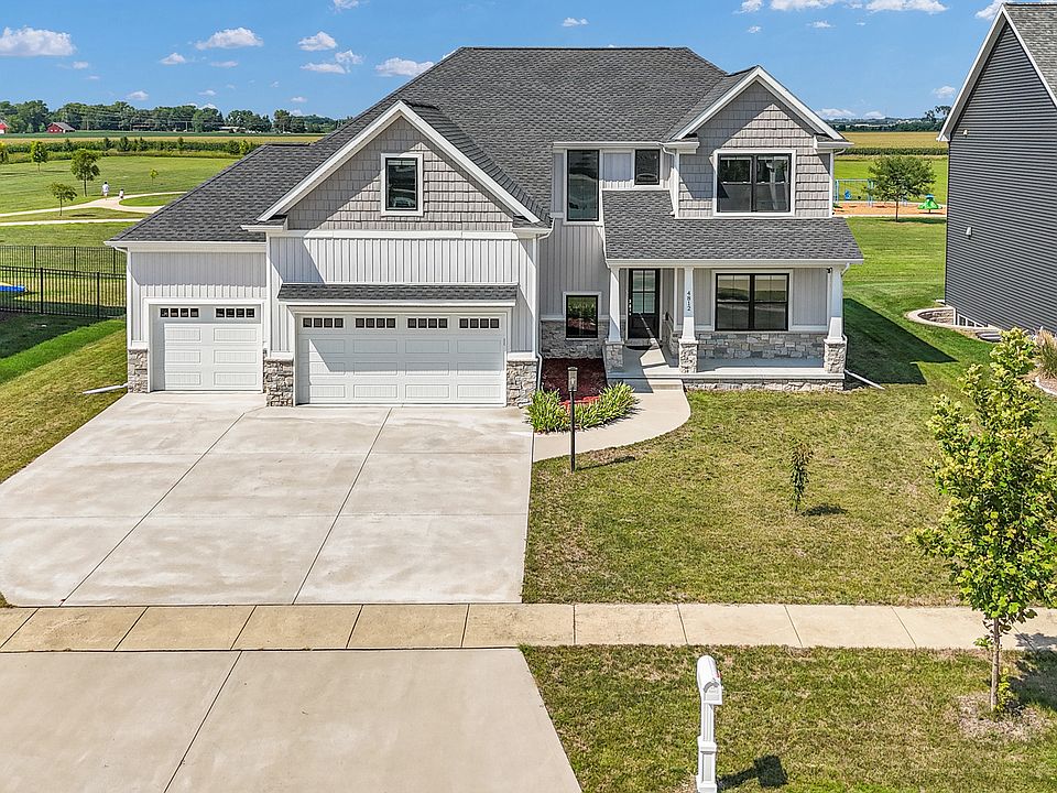 Welcome to your new home located in the prestigious Trails at Abbey Fields Subdivision! A newly built gem in 2021 that combines modern amenities with over 3500 sq.ft living space plus park views. As you step through the cozy covered porch, you're immediately greeted by a two-story foyer. All-white interior that creates a bright, airy atmosphere throughout. To your right, you'll find an office with French door, perfect for remote work, or a quiet reading space. Open-plan living and dining areas with hardwood flooring directly overlooks a park. The heart of this home is its clean & bright kitchen, featuring a large quartz countertop island, stainless steel appliances, soft close drawers/cabinets, providing plenty of storage space to keep everything organized for daily cooking. Off of the garage entry is a large mud-room with a closet, just an additional storage space for your convenience. The upper level is complete with a master bedroom, en-suite bathroom featuring separate vanity, fully tiled shower and large walk-in closet. 3 additional generous sized bedrooms along with another full bath and laundry room. Enjoy entertainment and recreation in the warm, carpeted finished basement with 5th bedroom and 3rd full bath. A private backyard is perfect for barbecues, morning coffee, or evening relaxation. This home is just waiting for you to begin making your own memories!