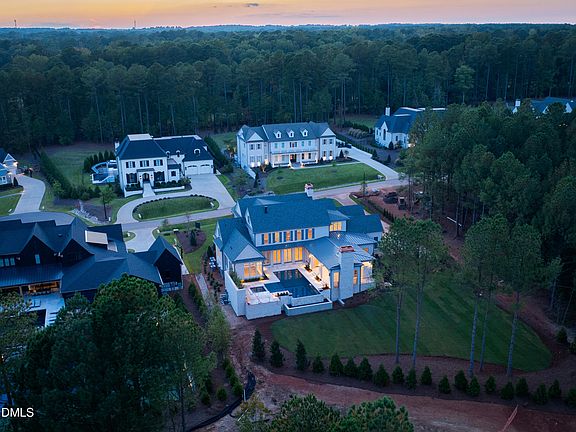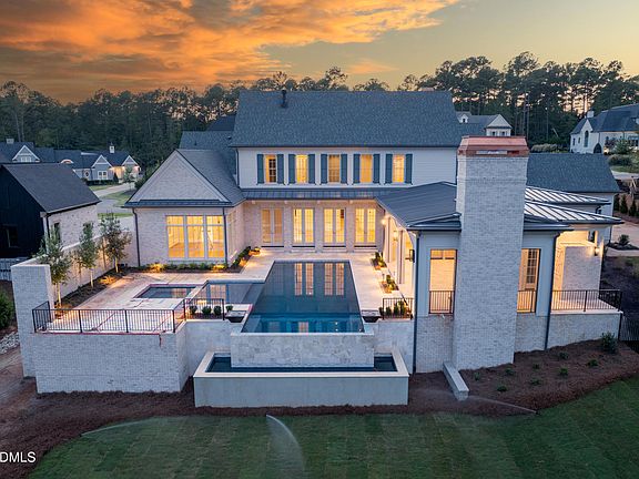 Presenting our second model home in Shadow Creek Estates, exclusively developed and built by Loyd Builders. This stunning residence, designed by Frazier Home Design, is situated on a picturesque wooded lot with serene tree-lined views tucked in the back of the community.  Our team has meticulously crafted this home with a harmonious blend of livability and design, creating a future-ready masterpiece. The exteriors and interiors subtly nod to classic Carolina charm while offering cohesive indoor-outdoor spaces that are cleverly current and thoughtfully tied to tradition. Experience the luxury of quality finishes, attention to detail, numerous little luxuries and high-end touches at every turn, including an exercise room, a bunk room, a scullery and multiple fireplaces. The expansive main floor features beautifully appointed main living spaces, an owner's suite, a guest suite, a study, and a separate dining room, all designed for maximum main floor livability. On the second level, this exquisite home offers three ensuite bedrooms, each designed with comfort and privacy in mind. This floor also features an exercise room and a versatile game room that can double as a bunk bed room, perfect for family fun or guest accommodations. Additional conveniences include walk-in storage and an elevator-ready shaft, ensuring future accessibility and ease of living. This thoughtful layout provides ample space and functionality. The outdoor space is perfectly designed for everyday living and entertaining. The vaulted porch, oriented parallel to the heated saltwater pool and spa, features a wood burning fireplace, creating a welcoming ambiance for year-round enjoyment. A convenient pool bath with an outdoor shower enhances the experience, ensuring seamless transitions between indoor and outdoor activities. This enchanting outdoor space is the perfect retreat for relaxation and leisure. Discover a home where timeless elegance meets modern convenience in this prime North Raleigh location.