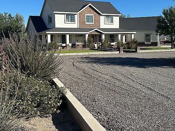 • Landscaping: The exterior landscaping features large curbing, mature trees, vibrant plants, and blooming flowers, all sustained by a built-in watering system for effortless maintenance. Behind the fence is a half acre with a fenced in garden area and a small orchard with room for more possibilities.