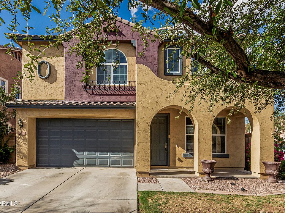Exuding charm and comfort, this 2-story home is for you! Excellent corner lot location with desert landscaping and a 2-car garage for your vehicles. Inside, you'll see a welcoming living room with abundant natural light for entertaining guests. Continue into the perfectly flowing family room showcasing a dining area and an open kitchen. You will love the stainless steel appliances, pantry, two-tier island with a breakfast bar, and maple cabinets with crown moulding in the kitchen. Discover a flexible den ideal for an office and a spacious loft perfect for a game area! Double doors open to the main retreat boasting a walk-in closet and a private bathroom with dual sinks. Washer and dryer included in the laundry room. The backyard is a blank canvas for your landscaping ideas. Stop by!