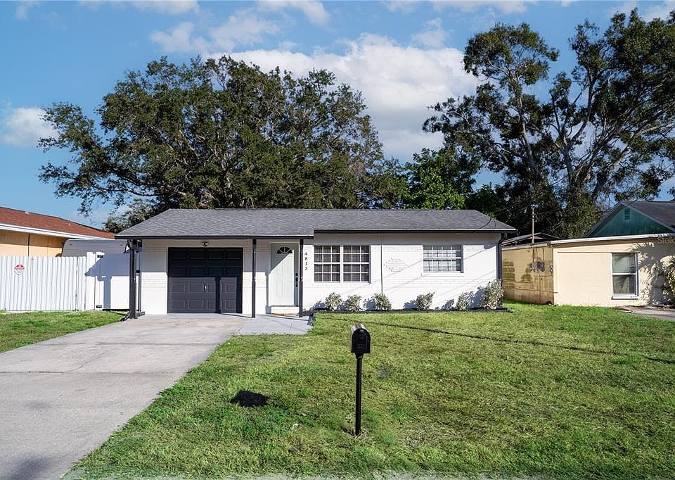 You must see this beautifully updated 2 bedroom, 1 bathroom, 1-car garage home in St. Petersburg! It offers easy, modern living with fresh interior and exterior paint, LVP flooring and a spacious open concept layout that ties the living room and kitchen together seamlessly. The kitchen shines with stone countertops, stainless steel appliances, a stylish backsplash, recessed lighting, and plenty of cabinet space, while the modern bathroom adds a clean, contemporary touch. A screened lanai overlooks the fully fenced backyard, giving you a perfect spot to relax and unwind. All of this sits just minutes from the water, yet in a non-flood zone and close to Walter Fuller Park, beaches, shopping, dining, entertainment and more. Don’t miss your chance to see this home in person, schedule your showing today!