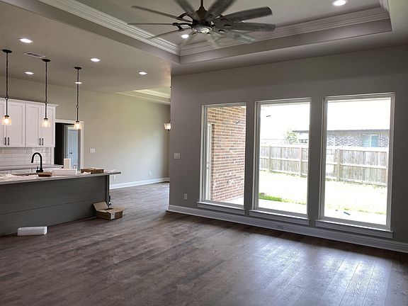MOVE IN READY!!! New Construction home in the Indian Springs subdivision in Groves. This listing is for Cormier Homes Eric floor plan which is a 4.3.2 with study. Split bedroom, open concept floor plan. The front of the house will be the flipped version of the drawing picture, all brick front with hardie eaves and soffits. Garage will be on the Left. Family room to have tray ceiling, windows overlooking covered patio. Master bath has 2 vanities with garden tub and separate shower. Large walk in master closet off of the master bath. Kitchen to have dartmouth white cabinets with pewter island and shiplap on backside of island. Washington quartz countertops. Backsplash behind venthood to the top of the cabinets. Gas stove. Vinyl floors in all areas except bathroom & utility. Vinyl on stairs leading up to the 4th bedroom with full bathroom.