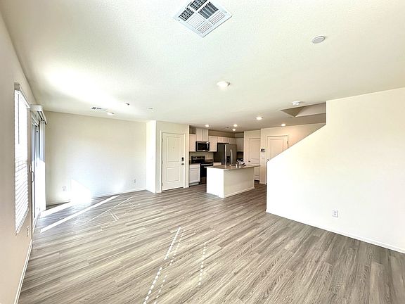 Open kitchenStainless steel appliancesDurable laminate flooringCarpeted bedrooms