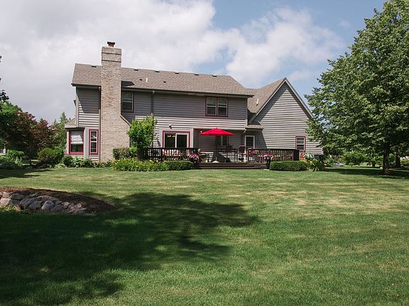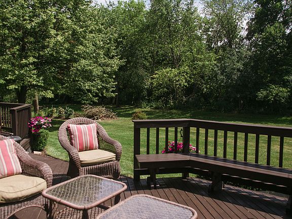 Gracious home offers hardwood flooring in formal dining room, huge floor to ceiling fireplaced great-room with two spacious and distinct sitting areas, gourmet kitchen with granite counter tops, tile floor and dinette patio doors to custom deck overlooking beautiful and private yard, four bedrooms with cathedral ceilinged master suite (one bedroom or study on first floor), first floor laundry, full basement with drywalled living area plus another full bath, attached 3 1/2 car garage and numerous extras. Site is nearly 1/2 acres of sculpted and wooded serenity. Come prepared to act quickly.