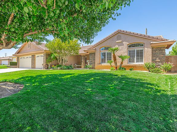 Located in a desirable West Palmdale neighborhood this home boasts an open floor plan with formal living and dining rooms and a family room with a fireplace. The spacious primary bedroom has a large walk-in closet. The bathroom has a dual vanity and a walk-in shower along with a soaking tub. One of the many features of this home is the impeccable lighting that enters the home through the many windows. The large kitchen provides a gorgeous view of the beautiful backyard that has an abundance of lush plants and flowers. The backyard also features a stream that flows into a koi pond.