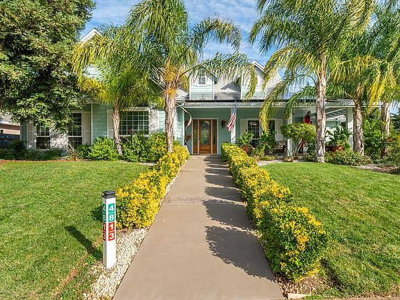 Updated and elegant single-story home in the very nice neighborhood of La Rinconada. Situated on a large .48 acre lot, this property includes a custom pool, immaculate grounds, large 3 car garage, detached guest quarters with full bathroom over garage, and owned solar. Home is 2778 square feet, detached living area is 566 square feet, for a total of 3344 square feet. Kitchen is a dream, with full length center islands with prep sink, hickory cabinetry with ''river glass'' panels, stainless steel appliances, quartz counters with tile backsplash, KitchenAid appliances, and recessed lighting. Primary bedroom has a large walk-in closet, large bathroom with an over-sized claw foot tub, and open walk-in tile shower with waterfall feature. The living room includes 12 foot high ceilings, (crown moulding throughout) and a cozy (full wall height) stone face gas fireplace, and large windows into the beautiful backyard. There is an office/study/in-law room with a full bathroom, in addition to a sitting room, or formal dining room. The high ceilings give an airy feeling to the home. The guest quarters include a full bathroom with shower over tub, recessed lighting, kitchenette, central Heat/Air, and a balcony over-looking the pool and gardens. The gardens are lush and colorful. Pool area has several patio covers for shade and has an outdoor sink/counter/food prep area. There is plenty of room for large gatherings here. Backyard is completely fenced. The beautiful Gunite pool has a heater for year round use, a waterfall feature, and was recently resurfaced, along with pool/patio decking. Large stamped concrete driveway for extra parking leads to a 3 car garage with sink and extra storage. Newer sound system installed in Living areas and both front & back patio areas. See amenities list in photos.