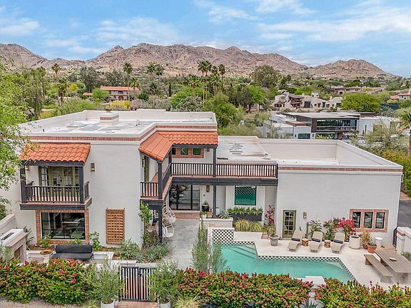 Available for Rent until 10/28/2025. W/ breathtaking views of Camelhead, Camelback and Mummy Mountains, this exquisite Mediterranean Hacienda is a showstopper. Designed by Urban Revival, this 4 bed, 3 1/2 bath home has been impeccably remodeled and furnished with the latest high-end finishes every inch exudes magazine-worthy style. A grand kitchen and dining space, an expansive living room, and multiple gathering spaces create the perfect setting for entertaining. Outside, a serene courtyard pool, an inviting outdoor fireplace, and wraparound balconies capture the stunning desert landscape. Just steps from the Echo Canyon trailhead and minutes from Arcadia and Old Town Scottsdale's premier shopping and dining, this home offers the perfect blend of luxury, location & atmosphere!