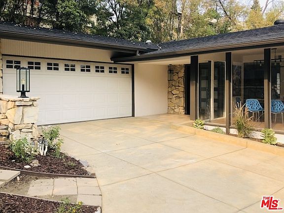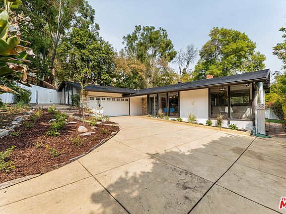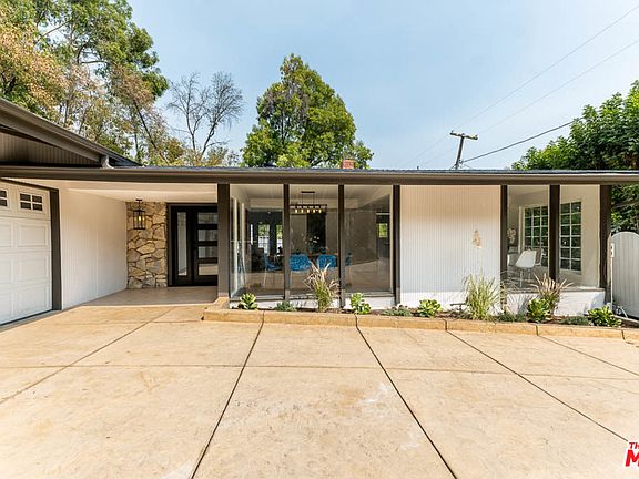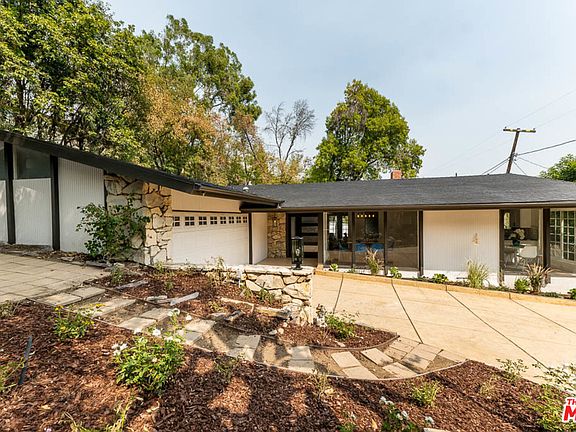 Tucked behind a long private driveway off a quiet street South of the Blvd. is this remarkably preserved and beautifully updated Mid-Century gem. Experience the warmth as you enter into a bright open concept living and dining room adorned with light and filled with timeless vibes including a terrazzo tile entry and a dramatic stone fireplace. Living room opens up to one of the multiple outdoor spaces, a stunning entertainers deck maximizing the ideal indoor/outdoor So Cal lifestyle. The large eat in kitchen opens to an inviting family room, with floor to ceiling windows and features custom cabinetry; quartz countertops, a breakfast bar and stainless steel appliances. A full modern bathroom with floating double vanity serves two generous sized bedrooms. The showcase powder room and en-suite master bedroom with a walk in closet complete this home. With a nod to Joseph Eichler architecture, this must see modern post and beam residence has been transformed for the next generation.