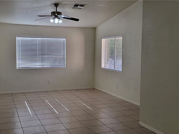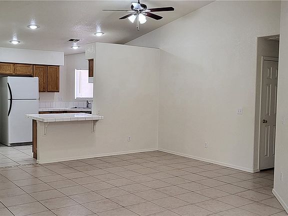 4-Bedroom, 2-Bath, 2-Car Garage in central Fort Mohave location. Tile flooring in living room, casual dining area, kitchen and laundry areas. Carpeted bedrooms. Large kitchen pantry, gas stove, microwave and dishwasher. Tile counters with breakfast bar. Ceiling fans in every room. Master bedroom features a walk-in closet and sliding glass doors to the covered patio. Master bath has a walk-in shower. Large fenced back yard. Welcome Home to Desert Horizons.