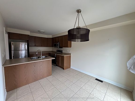 Beautiful 3 Bdrm Townhouse With Finished Basement. Filled With Natural Lights. Hdwd On Main And 2nd Floor, Kitch W/Breakfast Area W/O To Deck. Direct Entry From Garage. Huge Master Bedroom W/Ensuite & Walk In Closet, 2 Add'l Bdrms, 4 Pc Bthrm. Easy Access To Transit & 407.