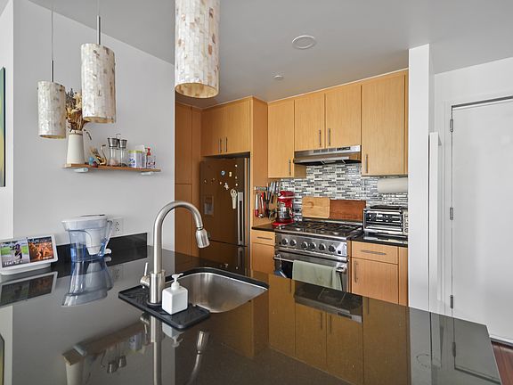Welcome to this bright and spacious 1-bedroom apartment with a private terrace This well-maintained 773 square foot residence features a generous living room with an open kitchen, floor-to-ceiling windows offering abundant natural light and impressive city views. The master bedroom easily accommodates a king-sized bed and includes a large closet with built ins. Adjacent to the living room, you'll find a sizable 92 square foot private terrace/patio. The open kitchen is beautifully designed with ample storage space, a breakfast bar/island, custom cabinetry, granite countertops, and high-end Fisher & Paykel stainless steel appliances. There is Hardwood flooring is throughout, and a Bosch washer dryer is included. The Hunter's View Condominium provides residents with 24-hour doorman/concierge service, a resident lounge, valet service, a bike room, a patio with grilling areas and fireplace, and a fitness center.