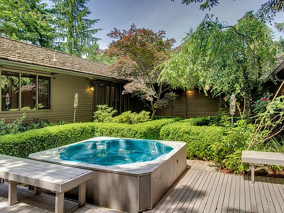 This Mid-Island, Mid Century Ralph Anderson designed home has an open floor plan, exposed brick, and exquisite beam architecture. Nestled amidst mature and lush greenscapes, large windows and wrap around deck accentuate PNW living. Enter through the courtyard, relax in the private garden and enjoy the soothing hot tub-spa. The finished daylight bsmt provides extra flex space for entertaining or a home office. This ideal Mid-Island location means you're close to parks, shopping, and I-90.