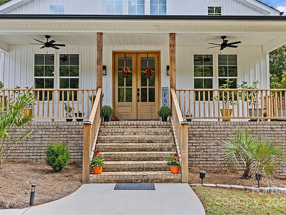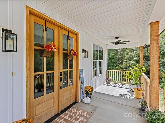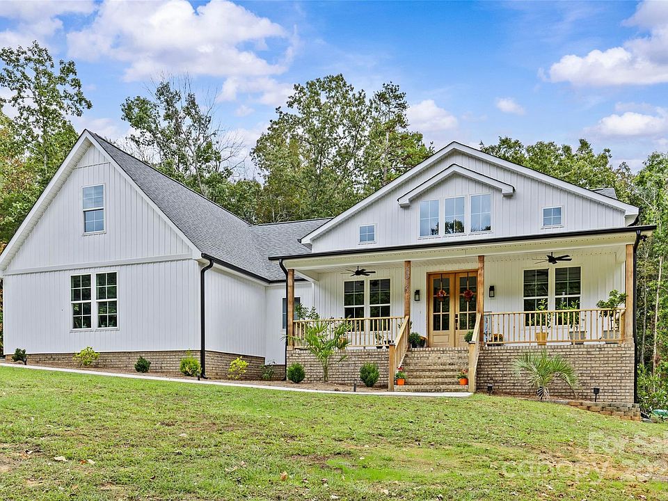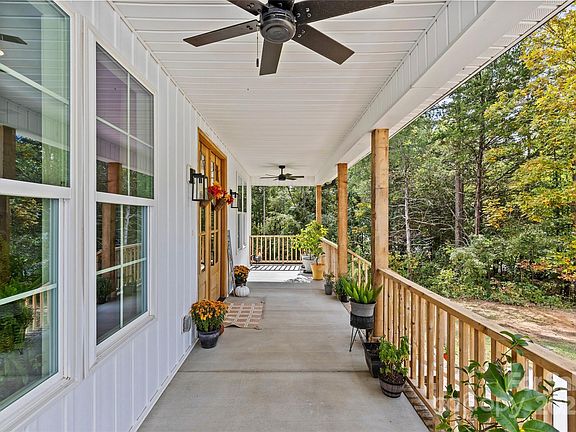 Welcome to your farmhouse dream home! This meticulously cared for home offers a private, wooded setting with elegant design and thoughtful updates throughout. Step inside to a grand open floor plan featuring a spacious living area, eat-in kitchen with island, and a generous dining space, ideal for entertaining. The kitchen shines with extended custom shaker cabinetry, a new tile backsplash, quartz countertops, and new stainless-steel dishwasher and stove. The primary suite is a true retreat with a vaulted ceiling, luxurious en suite bath featuring a double vanity, oversized tile shower, water closet, and a walk-in closet with custom shelving. A split-bedroom layout provides privacy, with two additional spacious bedrooms on the main level. The bonus room above the garage offers endless possibilities, perfect for a playroom, office, or guest suite. Recent updates include new flooring in bedrooms and bonus room, fresh paint throughout, updated light fixtures, an extended backyard concrete patio, and a whole-home water filtration system. Relax on either of the two covered porches while enjoying peaceful wooded views. Nestled on a quiet, dead-end street, this home combines tranquility, style, and convenience it's the perfect blend of country living and modern sophistication.