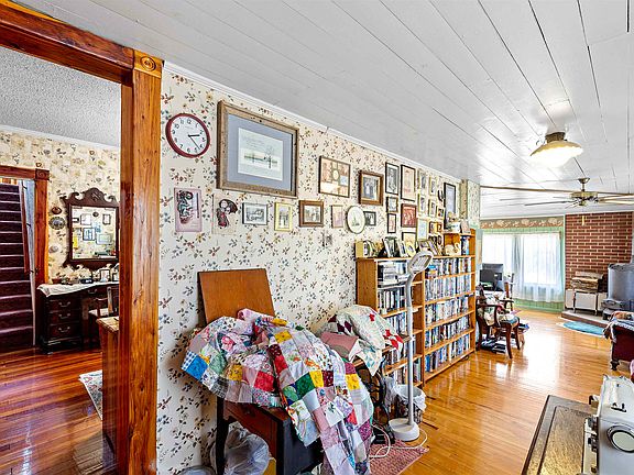 CHARMING HISTORIC FARMHOUSE!! Nestled in a serene setting, this well kept farmhouse offers timeless character and comforts. Situated on 26.2 acres, the property boasts 3 fenced apple & peach orchards, large fenced garden area, a stunning 3+ acre pond stocked with bass & bluegill with a fishing pier, large barn, several outbuildings and rolling open spaces ideal for recreation. The main home exudes charm with tons of original architecture. Central heat & air was added to the home in 2000. It features 3 bedrooms, 1 bath, office/library, open kitchen to breakfast area, screened in porch and tons of windows for natural sunlight. A separate apartment that sleeps 4 is perfect for guests. Also, an outdoor wood boiler and a well-equipped woodworking shop. Tons of potential for this unique estate!