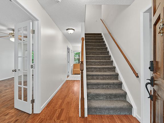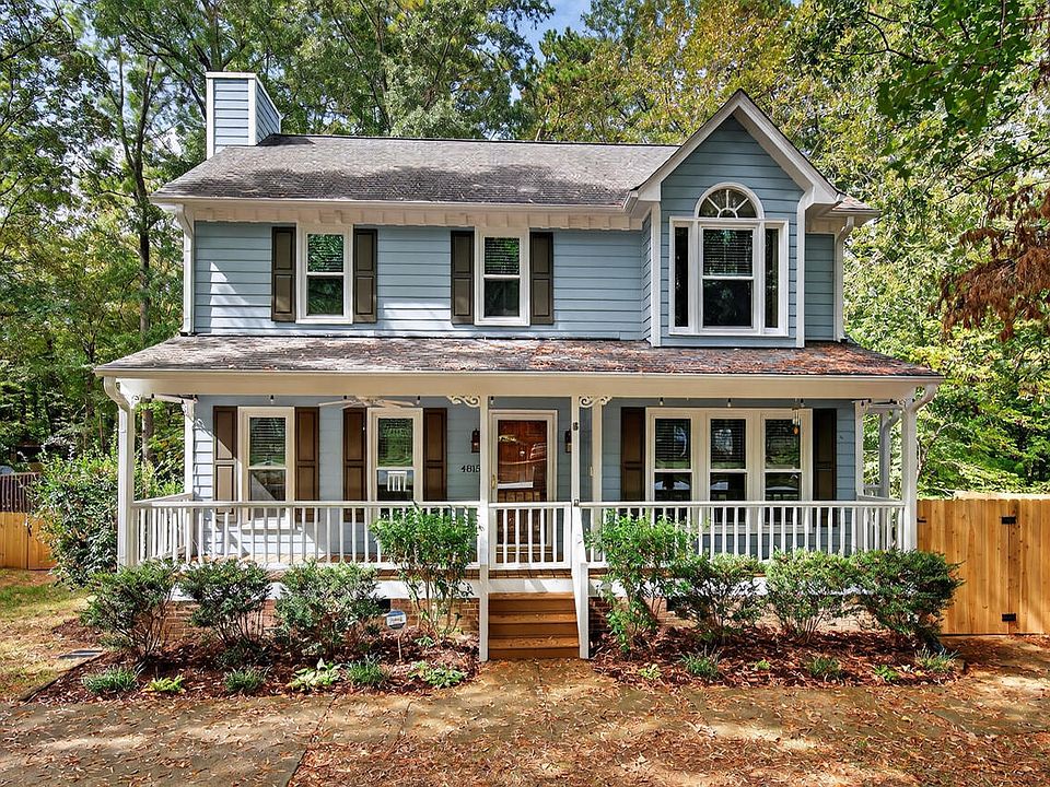 Beautiful and well-maintained home in desireable Eno Trace subdivision! Eno Trace is an established subdivision in N. Durham that backs up to the nature of the Eno River. Walking trails abound and there is an entrance to the Mountain to Sea Trail in the neighborhood. Eno Trace also boasts a fabulous clubhouse/pool/playground, ready for all your parties and fun times! Inviting front porch overlooking the established trees and landscape. The home lets in great natural light with new windows installed in 2019. New carpet upstairs installed in 2023 and the interior has been freshly painted. Large living room downstairs leads to the kitchen, which overlooks the large fully fenced in yard. Upstairs contains the 3 bedrooms and 2 full baths. Great deck out back for all your grilling and relaxing needs. Welcome Home!!