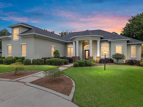 Welcome to this exceptionally crafted 4 bedroom 3.5 bath custom home featuring elegant architectural details and timeless design throughout. Interior Highlights: Impressive formal living room with arched windows, crown molding, and serene view. Formal dining room: with plantation shutters, tray ceiling, and detailed crown moldings. Private office: ideal for working from home. Family room: showcases a gas fireplace, custom wood-crafted built-ins and mantel - perfect for gatherings. Deluxe kitchen: features a center island with ample outlets and sink, eye-level double ovens, cooktop, microwave, under-cabinet lighting, breakfast bar and a spacious eat-in breakfast area. Primary suite retreat: Stunning double tray ceiling and two walk-in closets with custom organizers. Spa inspired bath: dual vanities, soaking tub and a walk-in shower. Additional features: split bedroom plan - one ideal for in-law or guest suite with access to a full bath that could serve as a future pool bath. Upstairs bonus room with half bath and closet - perfect for media room , gym, or hobby space. Full screened porch with built-in grill and sink for outdoor entertaining. Three car garage: one bay currently converted into a handy workshop. Roof replace in 2022, dual HVAC systems (2014 & 2016) serviced regularly. Beautifully landscaped with an irrigation system and irrigation well, matching storage shed perfect for outdoor equipment. HOA is NOT mandatory! Meticulously maintained and ready for new homeowners - this residence exemplifies quality, comfort and attention to detail in every corner.