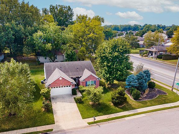 Enjoy convenience and peaceful living in a popular eastside of Evansville location and on a corner lot. Built in 2016, this one-level home also includes a 2-car attached garage. As you are welcomed inside through the inviting foyer leading you into a spacious open layout, where vaulted ceilings highlight the living room, kitchen, and dining area that flow seamlessly together. Gather around a cozy gas fireplace for everyday comfort and entertaining. Two bedrooms and a full bathroom with a tub shower combo in the hallway are located near the front of the home, while the owner’s suite is tucked away in the split-bedroom design, creating a private retreat. The suite features a spacious closet and a full bathroom with low level shower entry. Laundry is conveniently located nearby, with room for additional storage or shelving. Outside, enjoy the patio area and plenty of backyard potential to make it your own oasis.