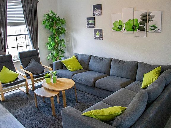 Turn-key investment and vacation retreat at Vista Cay Resort. This fully furnished 3-bedroom, 3.5-bath CORNER UNIT townhome offers luxury, convenience, and strong income potential in one of the only Orange County communities zoned for short-term rentals. Ideally located across from the new Universal’s Epic Universe Theme Park and just minutes from the Orange County Convention Center, International Drive, SeaWorld, Disney, and Orlando International Airport, this property is positioned at the center of Orlando’s top business and leisure destinations. The home features three spacious bedrooms, each with a private en-suite bathroom, plus a guest half bath. The open-concept second floor offers 9’ ceilings, abundant natural light, a private balcony, and a gourmet kitchen with stainless steel appliances and ample cabinetry. Additional highlights include a ground-floor suite with French doors opening to a patio, a one-car garage with guest parking, and professional designer furnishings. Recent upgrades include newer luxury vinyl plank flooring and a new roof (2022). Vista Cay Resort provides resort-style amenities including three pools, two full-service poolside bars, a fitness center, movie theater, game room, clubhouse, basketball court, playground, BBQ grills, fire pits, and a 2-mile scenic lakefront walking trail. The gated community offers 24-hour security, beautifully maintained landscaping, and an HOA that covers internet, cable, trash, and access to all amenities. With no minimum lease restrictions, this property is approved for Airbnb/VRBO and is well-positioned to generate significant rental income. Daily, weekly, monthly, or long-term rentals are allowed, and future bookings can be transferred to the new owner if using the same management company. Whether used as a full-time residence, vacation home, or income-producing property, this Vista Cay townhome is a rare opportunity to own in one of Orlando’s most desirable and flexible resort communities.