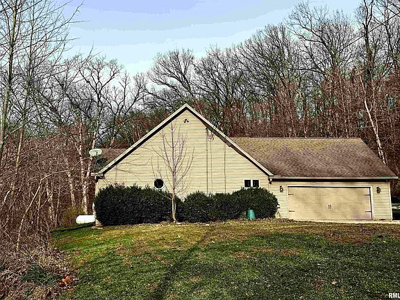 Do you want ACREAGE? This is an outdoorsmen recreational dream! 50 private wooded acres in Bellevue, IL. Mostly timber, this serene property has established ATV trails, a large flat area where the house is located, a creek running through the lower portion, and a meadow which is a small hike away from the house on the NW corner. Relax by the stone firepit on the patio after a long hike or sit on the front porch and watch the birds. A large amount of wild-life make this property their home. The house has 3 beds & 2 baths. The main floor has vaulted ceilings and was completely remodeled and repainted in 2021. Butcher-block countertops, farm sink, water filtration system in the kitchen. New light fixtures/fans and Life-proof flooring installed throughout main level. The bathrooms have new vanities and toilets. The laundry room/mud room is on the main floor off the garage and has also been remodeled. The large propane tank is owned. This home is on public water and septic (pumped in 2023). There are 2 chicken coops behind the house, one with a large run. The 2-car garage is attached with additional storage. The full basement has new carpet on the stairs and roughed in to be finished; has installed egress window for possible 4th BEDROOM. 14-month Home Warranty INCLUDED! Schedule your appointment now! You don't want to miss this one!
