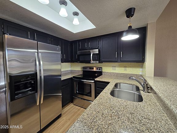 ONE STORY AND NO NEIGHBOR ABOVE YOU. RECENTLY REMODLED. NEWER GRANITE COUNTERS, WOOD LAMINATE FLOORING, FIXTURES, PAINT AND STAINLESS STEEL APPLIANCES. NEWER HIGH EFFICIENT AIR CONDITIONER. ACROSS FROM COMMUNITY POOL AND TENNIS COURT. EASY ACCESS TO SOUTH MOUNTAIN PARK. FULL SIZE WASHER/DRYER/FRIDGE. WALLED COVERED PATIO