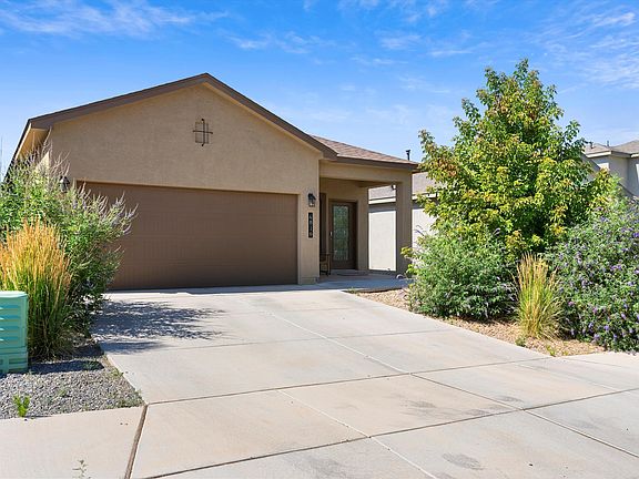 BETTER THAN BRAND NEW! Perfect fusion of modern comfort and prime location! Nestled in vibrant Rio Rancho, this home is the epitome of a dynamic, open-concept layout. 3 beds/2 baths and a two car garage. ALL APPLIANCES CONVEY even Washer and Dryer. Gourmet kitchen with upgraded cabinetry with premium quartz countertops, an island with bar seating, and a roomy pantry. The master suite indulges with a raised double vanity, ceramic-tiled walk-in shower, and a spacious walk-in closet, complete with built-in shelving. Your backyard is all about privacy and simplicity, with a covered patio, turf and low-maintenance landscaping. The neighborhood exudes a welcoming spirit, close to schools, retail hotspots, and pretty parks. Your dream lifestyle starts here! Call today!