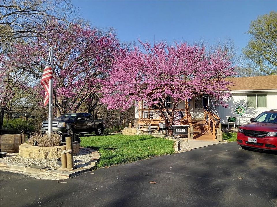 Many treesHuge backyardCovered front porchLevel lotPeaceful garden spot