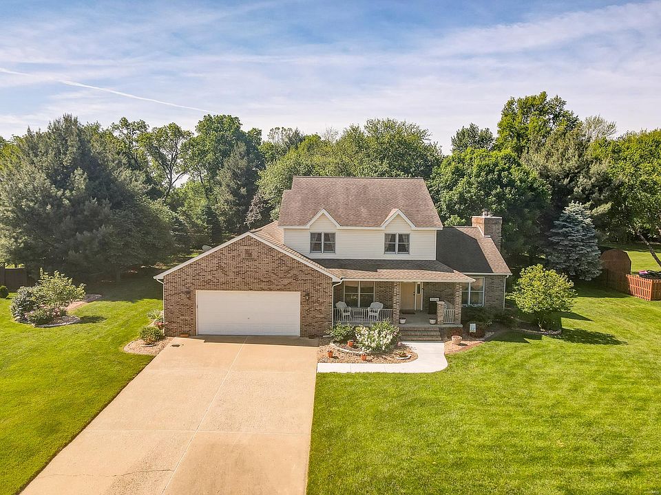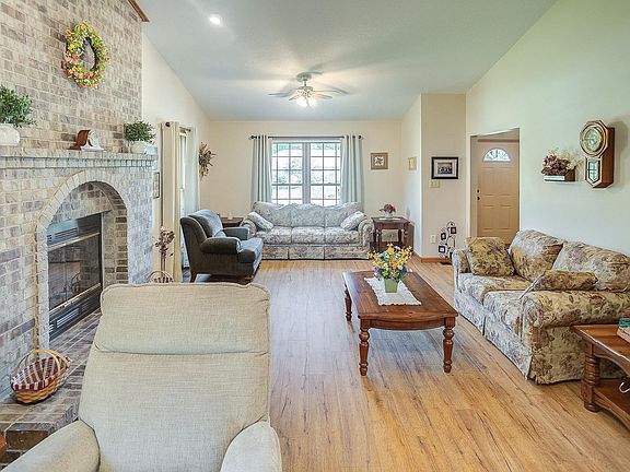 LIST/SOLD SAME DAY. Discover your dream home nestled on a tranquil 1-acre lot with mature trees, offering a peaceful retreat from the hustle and bustle of everyday life. This custom-built gem features: 4 bedrooms and 4 bathrooms. Vaulted ceiling in living room with a beautiful wood burning fireplace. Custom kitchen cabinets with new quartz countertops & tile back splash. Newer LVP flooring in main level. Large three seasons room and main floor laundry. Primary bedroom suite with whirlpool tub & separate shower. Full basement, partially finished with a large family room & wood burning fireplace. Geo Thermal system appx 10 years old. Hi Eff 80 gallon water heater. 2 car heated oversized garage. Tons of storage with an abundance of closets and floored attic area. Relax and unwind on your covered front porch. Additional Rooms: Sun Room