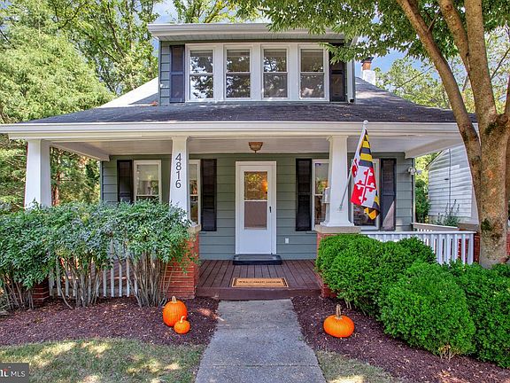 She is a WOW! Beautiful bungalow with 9 foot ceilings and BIG windows that fill this home with natural light! Situated on a gracious 15000 sq ft level lot in lovely Berwyn. Welcoming covered front porch and a spacious back patio - just waiting for you to grill out and entertain! The full-width living room has seven windows and gleaming heart-pine floors and a classic open staircase. Step up into the dining room with its natural oak flooring, useful corner closet and a chandelier. The updated kitchen has new quartz counters, subway-tile back splash and brand new SS appliances including the 5-burner gas stove with a center griddle, a dishwasher & fridge! The kitchen has a super useful breakfast counter, lovely vaulted ceilings and is open to the sunroom addition. What a gorgeous view and access to your new backyard. Fabulous fenced yard - there's plenty of room to plant and play! The main level includes a family room open to the vaulted-ceilinged sunroom with 10 windows. The family room has built -ins and could return to being a bedroom if needed. Don't miss the spacious hall closet and the full bath with a tub/shower and pedestal sink. Upstairs the heart-pine flooring continues. The primary bedroom peacefully overlooks the backyard and has a large walk-in closet. I love the nook area plus there is under eave storage in all three bedrooms. The front bedroom enjoys 4 windows overlooking the tree-lined street and has built-in wall boxes and a good sized closet. The 3rd bedroom is on the driveway side and has a surprisingly deep closet too. The big beautiful bathroom has dual sinks, a tub/shower and a charming and useful Dutch Door! The full, unfinished basement is neat and clean and holds utilities, a laundry area and plenty of space for storage/workshop/gym/crafts. It has direct access to the backyard as well. Driveway parking includes an EV charger! What a great spot, close to a playground, tennis courts and the bike path! Situated in Berwyn near Lidl grocery store, shops and restaurants and so close to the University of Maryland's flagship campus! If you work in the City of College Park there is potential closing cost assistance via the City-University Partnership Live + Work program! You will love living here!