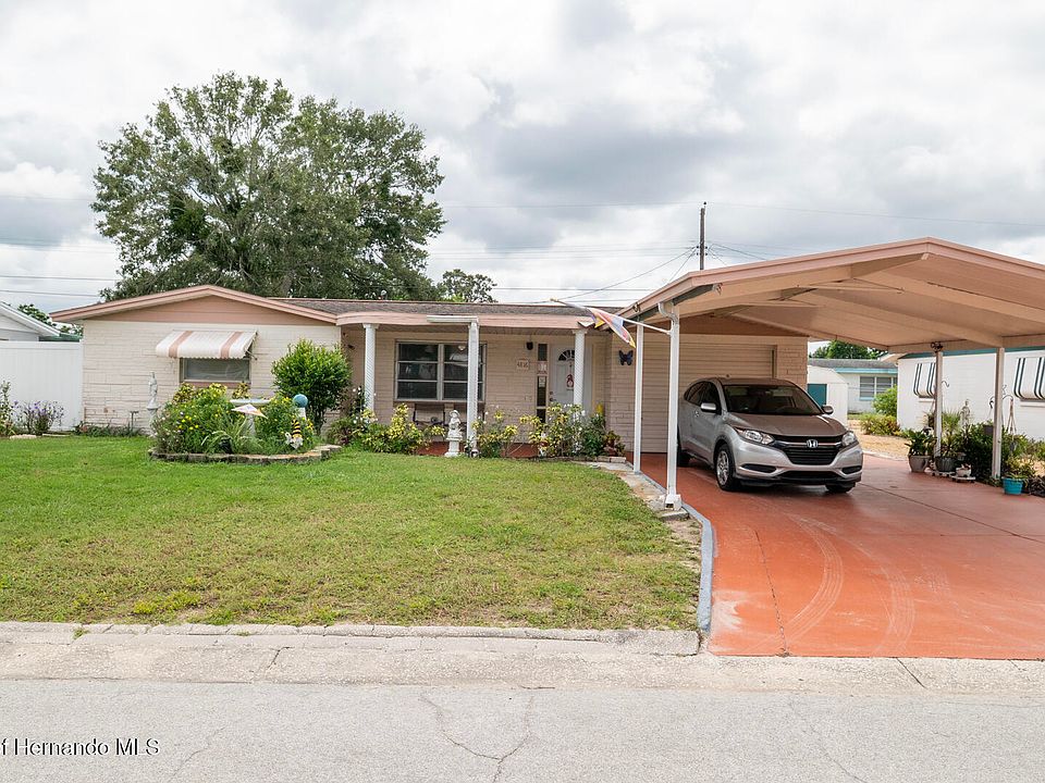 Welcome to your dream home in the charming town of Holiday, FL! This beautiful single family home boasts 2 bedrooms, 1 bathroom, and 1200 square feet of living space. The attached 1 car garage and double carport provide ample parking for you and your guests. The split garage also includes a craft room with A/C, perfect for all your DIY projects. Step inside and be greeted by the updated kitchen featuring formica countertops, new cabinets, and tile flooring. The bathroom has also been recently updated, adding a touch of modern elegance to the home. Enjoy the Florida sunshine on the covered lanai, perfect for outdoor entertaining. Located in a peaceful neighborhood, this home is just a short drive away from local beaches, restaurants, and shopping. Don't miss out on the opportunity to make this your new home sweet home!