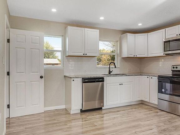 New Roof installed 4/14/2023!!! Don’t miss this renovated open concept home that’s been completely updated. Brand new chefs’ kitchen with stainless steel appliances, new cabinets, granite countertops and stylish backsplash. Two beautiful bathrooms with new tile, vanities, sinks, toilets, and fixtures. Beautifully modernized primary bedroom features a stylish barn door and access to laundry area. Party deck, windows, laminate floors, plumbing and recessed lighting throughout. The fenced backyard and brand new exterior paint add great curb appeal.