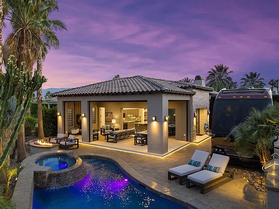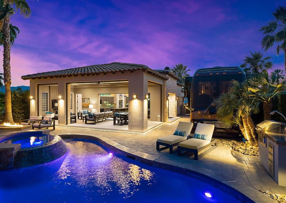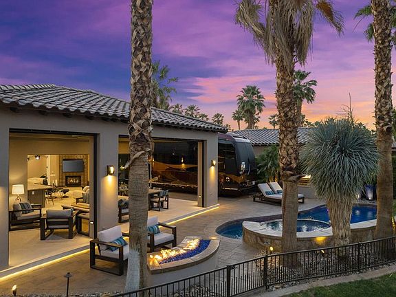 #106 Desert Shores Motorcoach Resort:Luxury RV Resort Lot at Desert Shores Resort.One of the most spectacular motorcoach properties you will ever find!Totally reimagined Exterior Elevation and Additions completed in 2021.The most lavish Outdoor Living Space you will find with:15' x 32' Solid-Covered PatioVoluminous 11' CeilingsRaised Patio Floor matches interior floor height for seamless floor from indoor to outdoor living spaces.Full Bathroom for dinner guests and easy access from swimming pool.Patio includes both Electric Sunshades + Security Shutters which enclose the entire outdoor living patio keeps the patio safe and clean. (Security Shutters are included on all windows and sliders throughout the property)Built-In Space Heaters + Misting System.Cantilevered Patio Floor with underlighting.Beautiful Paverstone driveway and patio spaces and Epoxy Coach Pad.Freeform Pool with Quartize Spa with new Pebble Finish offers Raised Bond Beam at back of pool for privacy + LED Lighting and Pentair Remote Control System.Blue-Glass Fire Pit.BBQ grill area with wood-pellet memphis Smoker/Grill.Entry Gate for Privacy.Raised Santa Barbara Smooth Stucco exterior with Eldorado Stone Trim.Newer Landscaping and Ground Lighting.Raised RV HookUp Pedestal.Wrought-Iron Fencing to keep your Doggies secure.INTERIOR FEATURESRecent and Beautiful Remodeled Interior.Great Room/Kitchen opens to spectacular outdoor living spaces.Upgraded Granite Slab Counters.