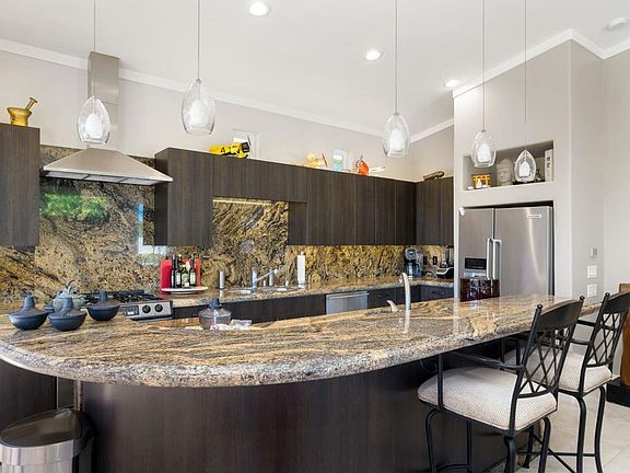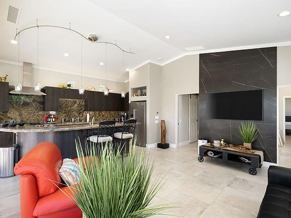 #16 DESERT SHORES RESORTLuxury Motorcoach Resort Redesigned Villa now with 2 Retreats + 2 Bathroom, (1 with steam shower) and a 438 Sq Ft. garage with car lift. Total size of structure is 1,638 Sq. Ft.Outdoor living offers huge, circular granite bar, pool and outdoor fireplace situated high above Lake 1 with fountain views!Association includes clubhouse, tennis, pickleball, fitness center, community pool & spa, social activities, 24-hour, guard gated with high-tech perimeter security, trailer storage area, doggie park, front yard landscape maintenance & High Speed Internet.