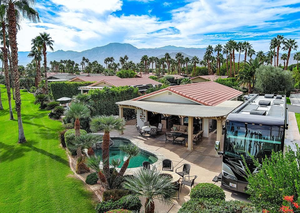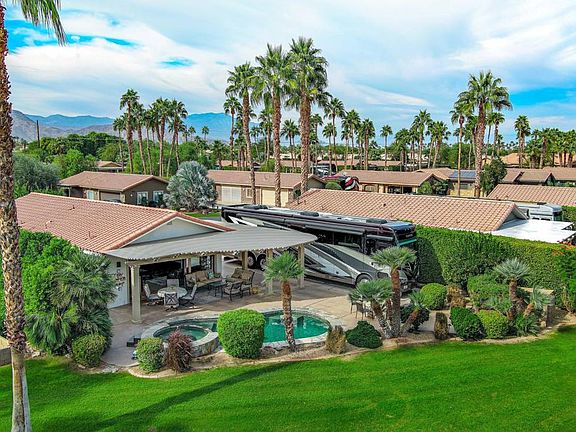 #53 DESERT SHORES RESORTLuxury Motorcoach Resort.Ownership requires Class A motorhome with minimum length of 36'Nice motorcoach property with RV parking space, a Coachside Villa on extra deep lot perched over a gorgeous lake with night-lighted fountains.Freshly painted inside and out this eastern backyard property includes a Coachside Villa with Great Room/Kitchen, Retreat with Bathroom and Walk-In Closet.Outside offers a pool, spa, natural gas firepit, expansive pergola with electric heaters, and a BBQ station.Association includes clubhouse, tennis, pickleball, fitness center, community pool & spa, social activities, 24 hour, guard gated with high-tech perimeter security, trailer storage area, doggie park, front yard landscape maintenance & brand new super-speed FIOS internet