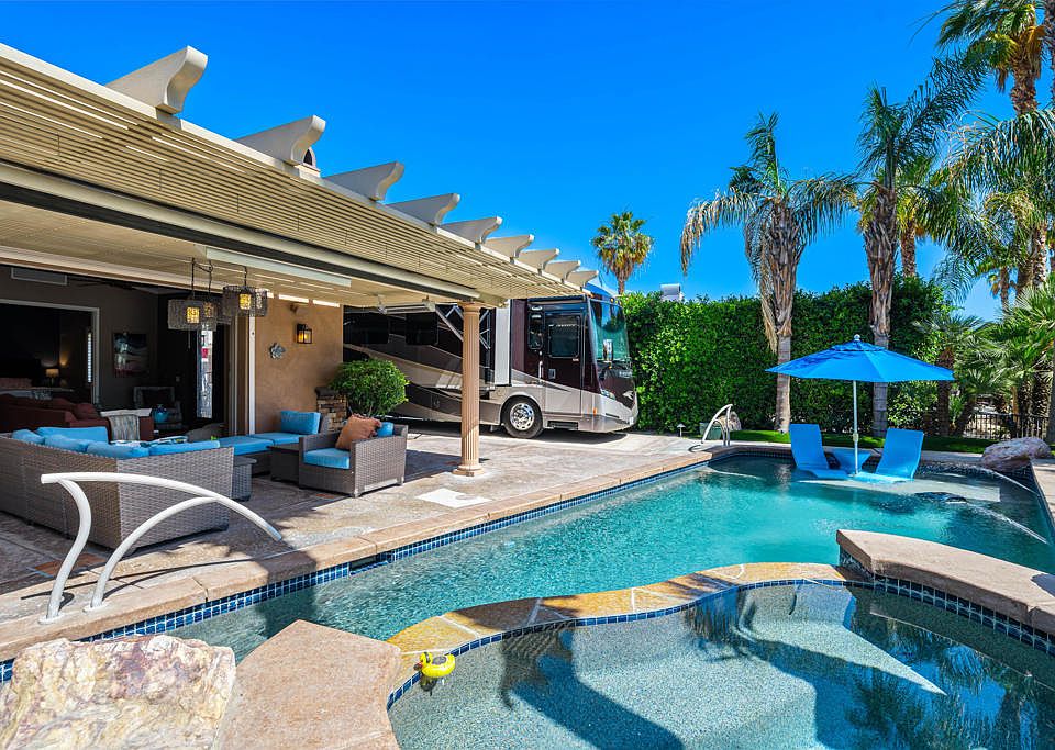 Luxury RV Resort On-Site Office -Furnished property at Desert Shores Resort.Popular Plan 20 floor plan with spacious retreat with en suite and walk-in closet.Private location with afternoon sun.BBQ & Granite High-Top Table. Pool & Spa with double quartzite spillways! Very nice center-lake property located on Lake 2 with Fountain & Mountain Views! Double-Door Entry to Villa.The kitchen is equipped with maple cabinets and stainless-steel appliances including a refrigerator, oven range, dw microwave, trash compactor, and under-counter beverage fridge + clear-ice maker.Corner Fireplace with stacking glass doors to patio.Newer high-efficiency/output gas pool heater.Spacious rooms offer Crown Molded Ceilings and chiseled Porcelain Floors throughout.Association includes clubhouse, tennis, ,pickleball fitness center, community pool & spa, social activities, 24 hour, guard gated with high-tech perimeter security, trailer storage area, doggie park, front yard landscape maintenance & brand new super-speed FIOS internet