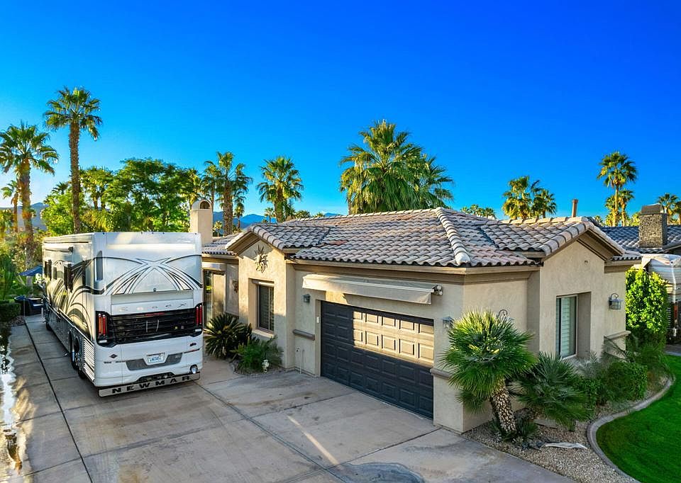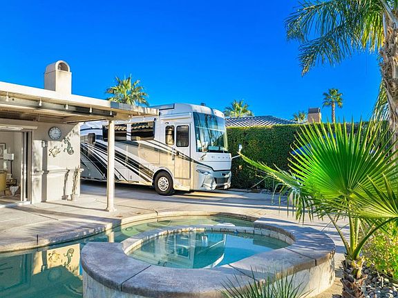 Luxury RV Resort - Newly remodeled Desert Shores Resort property!Newer kitchen countertops, newer vinyl plank floors, new bathroom, baseboards, epoxy floor and split-system air in garage.Covered patio and pool, spa and firepit!Western Exposure Property at Desert Shores. Pool & Spa! Association includes clubhouse, tennis, fitness , pickleball, community pool & spa, social activities, 24 hour, guard gated with high-tech perimeter security, trailer storage area, doggie park, front yard landscape maintenance & brand new super-speed FIOS internet