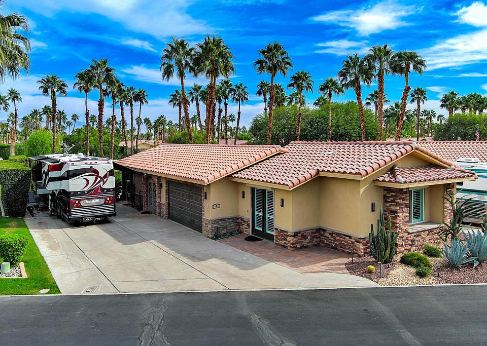 #8 DESERT SHORES RESORTLuxury Motorcoach Resort in the heart of Indio, California. Newer 525 Sq Ft. Guest Suite addition makes for a total of 2 Retreats and 2 Bathroom + Great Room/Kitchen for a total of 1,240 Sq Ft living space + Garage.(Garage dimensions = 18.5' x 23')Waterfront location with spacious outdoor living space with freeform Pool and Spa.Association includes clubhouse, tennis, pickleball, fitness center, community pool & spa, social activities, 24 hour, guard gated with high-tech perimeter security, trailer storage area, doggie park, front yard landscape maintenance & brand new super-speed FIOS internet