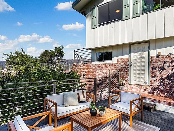 Tucked away on a peaceful cul-de-sac in the San Rafael Hills of vibrant Eagle Rock, serenity and privacy define this hilltop home. This bight and airy residence has a separate ADU perfect for an income opportunity. The newly remodeled ADU sits atop the street level garages. Up the hill, the bright and airy 3 bedroom, 2 bath house boasts views from most every room. The updated open-concept kitchen opens to the great room. A large living room, 3 bedrooms and two updated baths complete the home. Entertain friends and family, or enjoy a peaceful coffee on the spacious front deck. A storage room currently shown as an office (not counted in the square footage) sits right off the deck. The back and side yards are fully fenced. Brand new roofs on both the main house and ADU were installed in March of 2025. The ADU was just completed. Main house measures 1409 sq ft. The ADU measures 391 sq ft. This gem of a house is move-in ready. With its convenient location in Eagle Rock, you're just minutes from coffee shops, dining, parks, and quick freeway access to the 134, 110 and 2 -- making commuting or city escapes a breeze. Although, once you are home, you won't want to leave.
